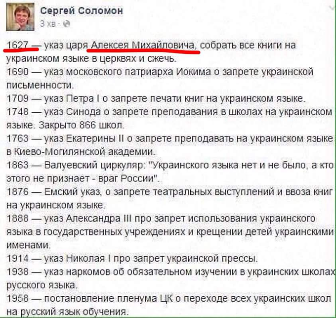 Украв название Русь у Украины, и присвоив себе ее историю, Москва начала истреблять и запрещать любое упоминание о существовании Украины, ее язык, культуру и литературу, что бы скрыть свои истинное происхождение и преступления.