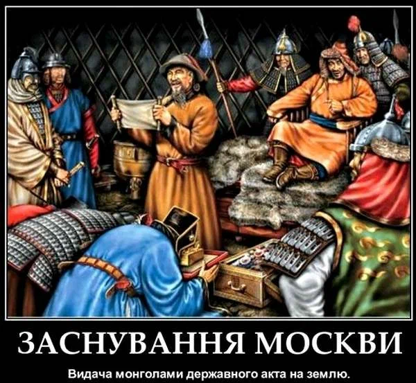 Поселение Москва основал киевский князь Юрий Долгорукий, но на этом все "родство" Москвы с Киевом заканчивается, потому как потомки Долгорукого, правители Москвы отреклись от родственных связей с Киевом (Русю) и приняли присягу верности ханам Золотой Орды и стали служить ее интересам.