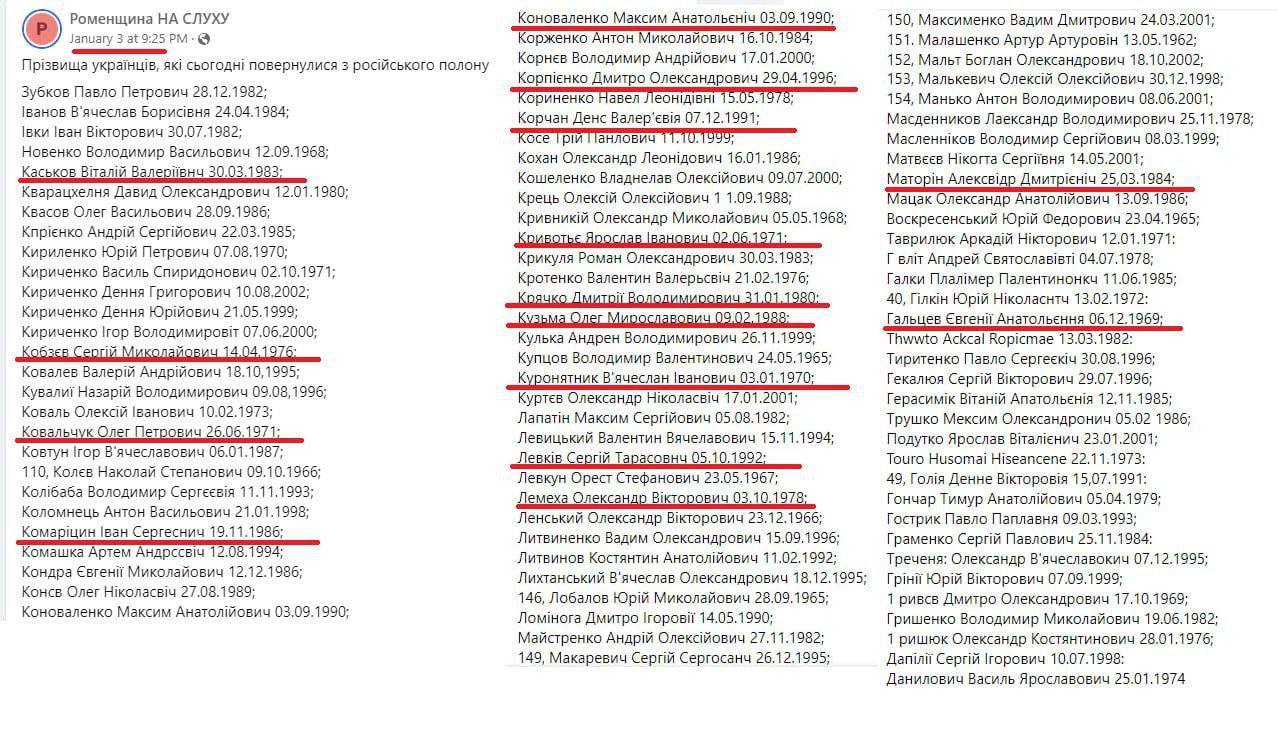 Пропагандист Маргарита Симонян опубликовала списки, в которых якобы имена украинских военнослужащих, которых перевозили на подбитом Ил-76. Но эксперты обратили внимание, что некоторые люди с списка, уже были освобождены по обмену раньше.