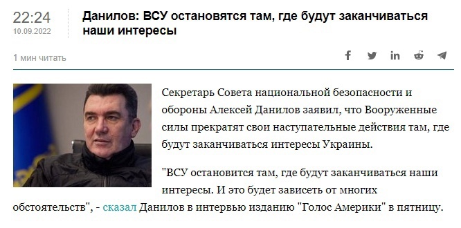 Также в интервью глава Минобороны объяснил, почему не разглашают детали контрнаступления. По его словам, с украинцами пытаются "максимально откровенно общаться", но в то же время следует понимать, что враг за всем пристально следит и пытается понять, что его ожидает.