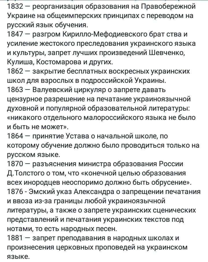 Список запретов украинских языка и литературы (на укр языке) в Российской империи