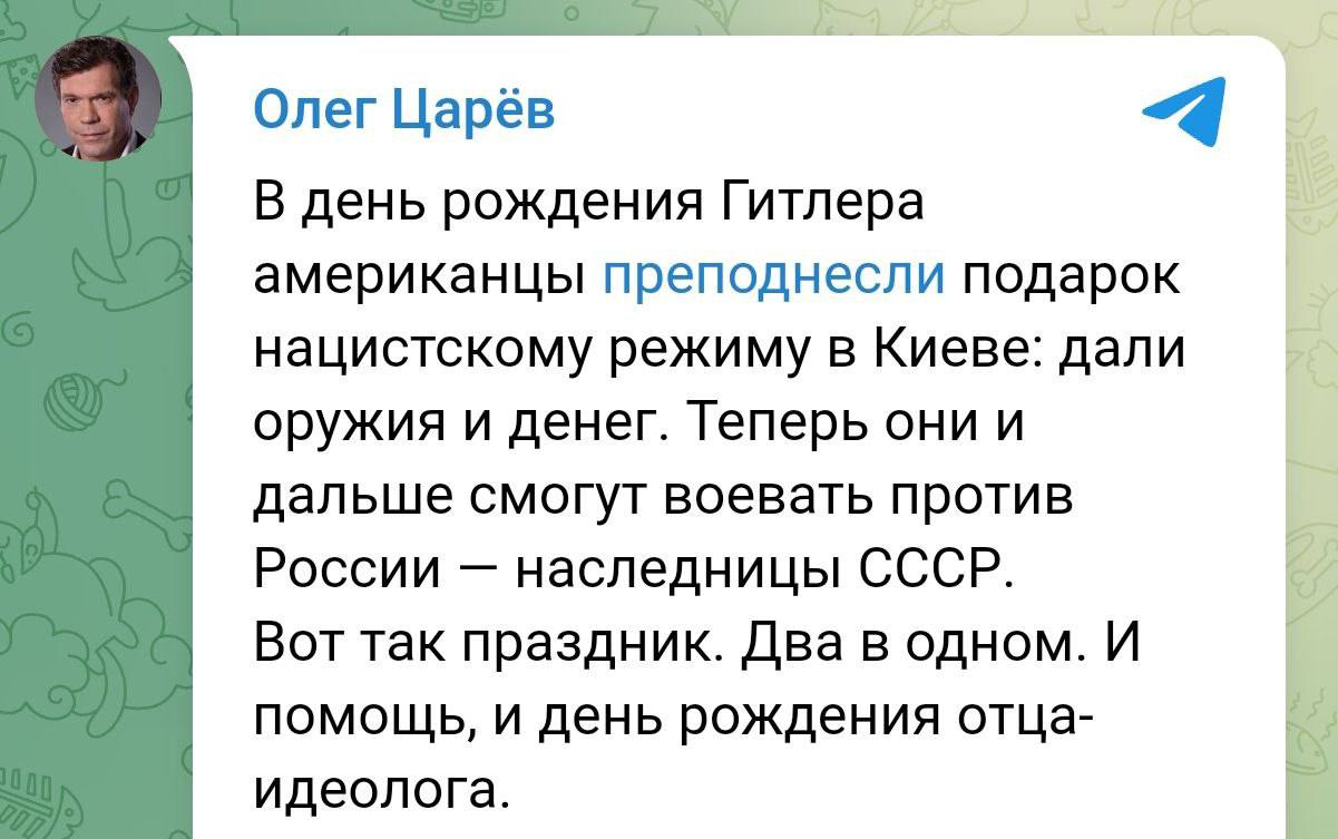 "Я считаю, что демонизация Украины началась Такером Карлсоном, который, по моему мнению, оказался там, где он должен быть все время, когда брал интервью у Владимира Путина"