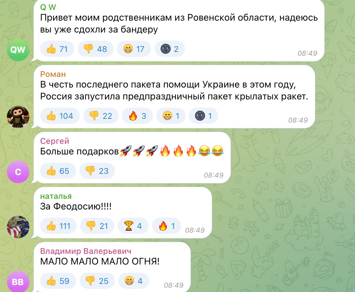ЗС РФ завдали масованого удару по Україні 29 грудня 2023 року. Під ударом опинилися мирні міста, цивільна інфраструктура. Це викликало бурхливу радість у "простих росіян", які "ні в чому не винні"