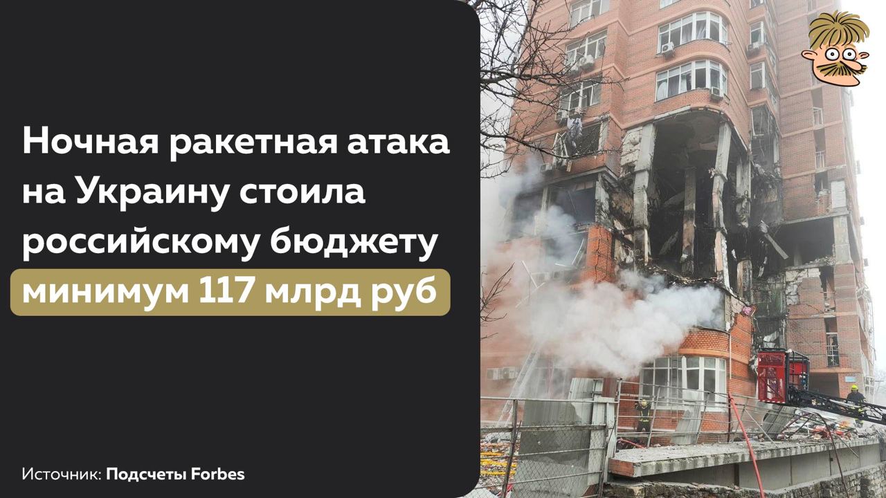 Обстріл України 29 грудня 2023 року коштував бюджету РФ приблизно 117 млрд рублів