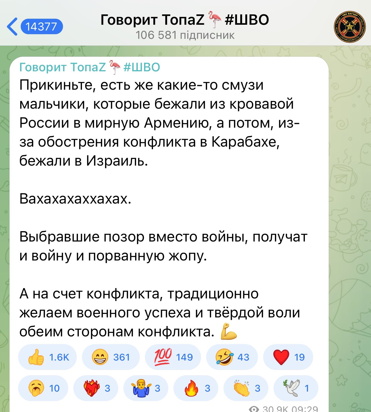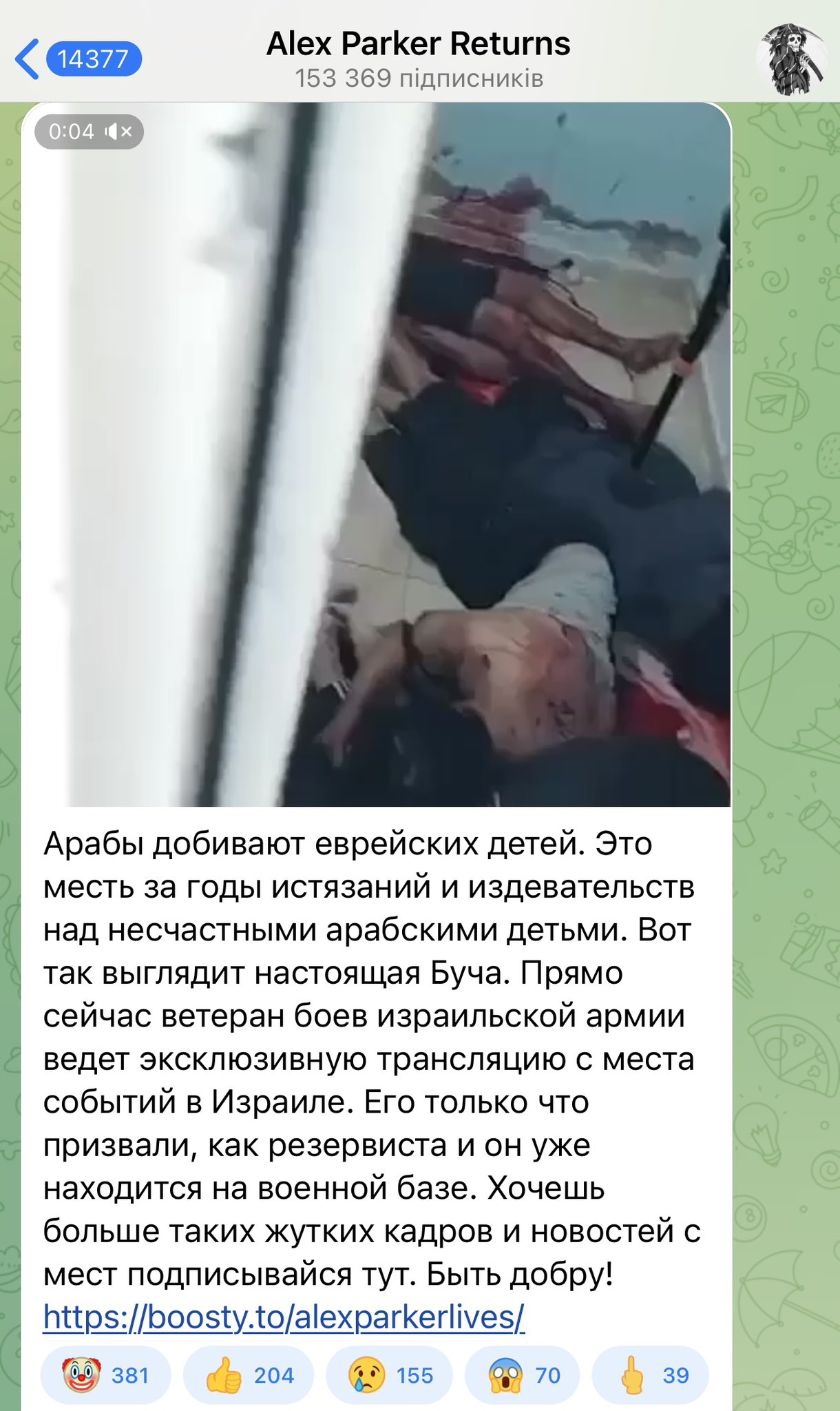 Не дивлячись на весь жах того, що відбувається, смерті, страждання громадян Ізраїлю і наближення масштабної війни, як дій у відповідь Ізраїлю, у громадян РФ ця подія викликала привід для радості і зловтіхи...