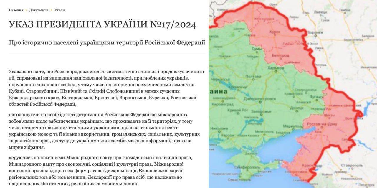 У День Соборності України, 22 січня 2024 року, президент Володимир Зеленський підписав указ "Про історично населені українцями території Російської Федерації". Згідно з документом, Кубань, Стародубщина, а також Північна та Східна Слобожанщина у межах сучасних Білгородської, Брянської, Воронезької, Курської, Ростовської областей та Краснодарського краю визнаються землями, історично населеними українцями.